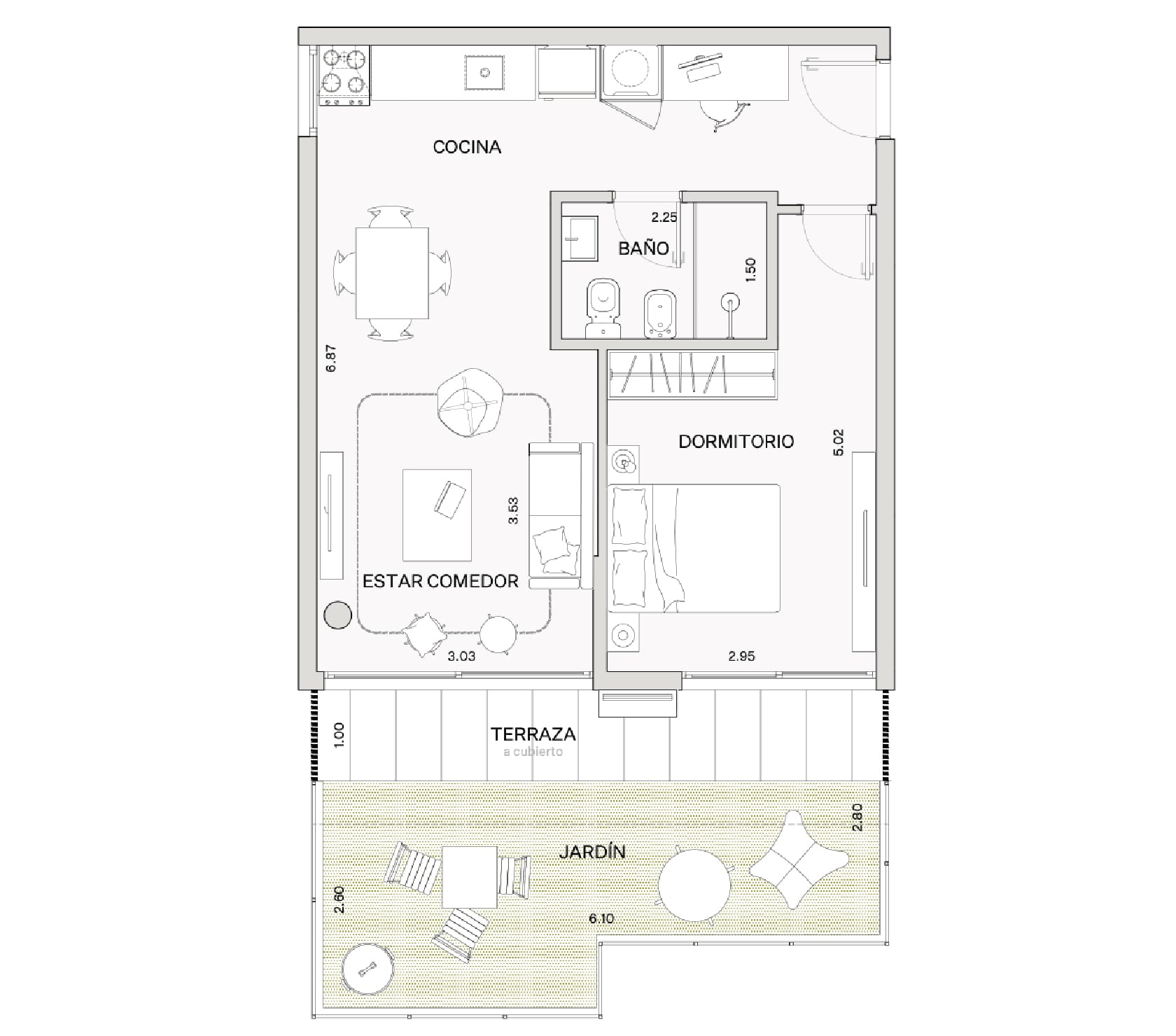 100% del área del jardin incluyendo muros perimetrales